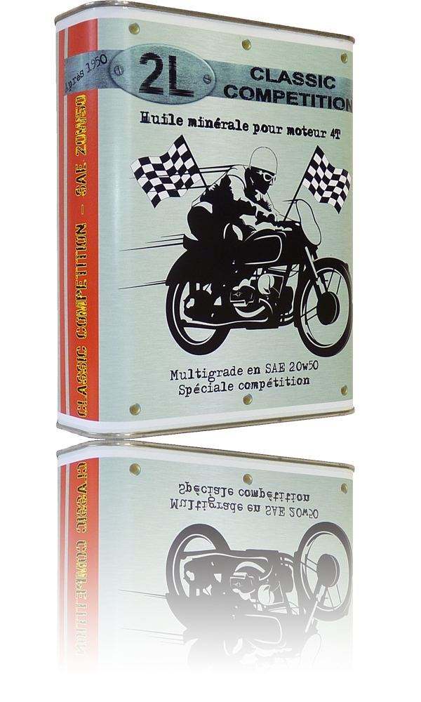 Huile multigrade minérale, pour motos de collection, après 1950.