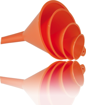 Assortiment de 4 entonnoirs plastique avec bec d'écoulement droit.