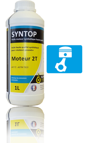 SYNTOP est une huile aux qualités particulières, élaborée à partir de composants exclusifs qui en font un lubrifiant à haut rendement, à classer dans les huiles haut de gamme du marché (surtout, si on utilise les versions avec additifs comme SYNTOP 2T (aux silicones/polyméres + additif carburant) ou SYNTOP- T (aux TSM 2, additif conditionneur de métal)).
